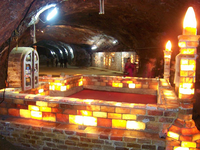 Walking inside the mines the visitors come across marvels such as a mosque, a model of Minar-e-Pakistan, a dispensary, Chaghi mountain and some other colourful buildings all made up of salt bricks. The monuments glow with lights inside them. The dazzling Sheesh Mahal, or the palace of mirrors, in another attraction in the mines with walls made of transparent salt and water ponds illuminated with colourful bulbs. The illuminated ponds and chambers have been connected with bridges made of salt.